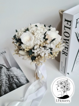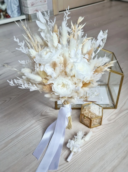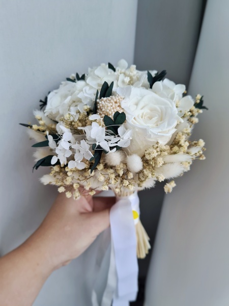 Здравствуйте, меня зовут Ирина, и несколько лет я создаю для вас уникальные композиции и букеты из стабилизированных цветов и сухоцветов, которые: не нуждаются в воде и сложном уходе; стоят от года и более; остаются живыми и гибкими. Стабилизированные цветы - это настоящие, живые, срезанные цветы, которые прошли специальную обработку и будут радовать вас несколько лет. Настоящая природа в новом формате! Идеальный свадебный букет здесь. Он будет красиво смотреться на фотографиях, выдержит холод, жару и сохранит воспоминания о памятном дне.