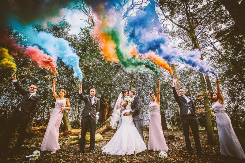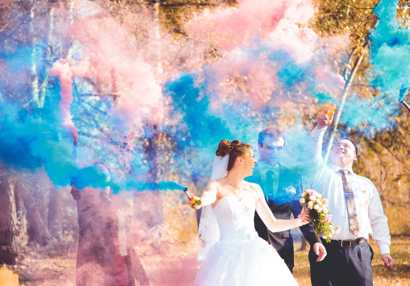 Не одна свадьба не обходится без цветного дыма. Когда у свадебного фотографа заканчиваются идеи - на помощь приходит цветной дым.
