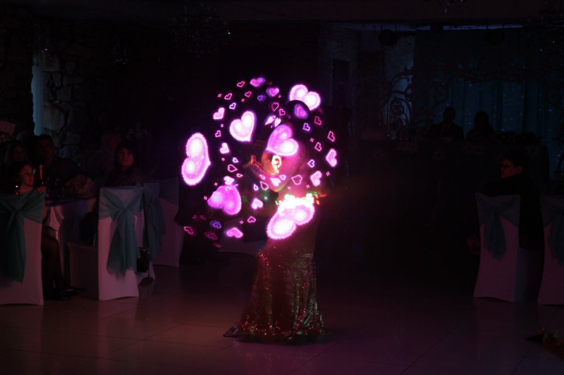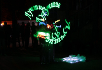 Светодиодное шоу - это, прежде всего, аналог фаер-шоу. Его-то сейчас навеное уже все видели: артисты так и сяк крутят разнообразный горящий реквизит, выписывая замысловатые узоры. Такой реквизит вместо пропитанных горючим фитилей можно снабдить светодиодами и аккумуляторами. Сразу решается проблема с выступлениями в помещении: от светодиодов нет ни дыма (сигнализация молчит, ура!), от них нет керосиновой вони и от них ничего не загорится.